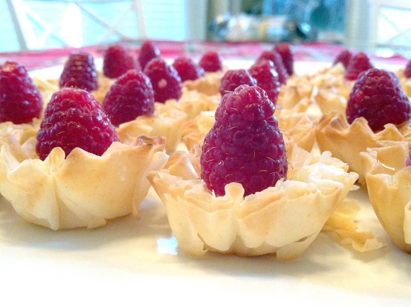 3. Top each tart with a 1/4 tsp of honey and one raspberry. Serve and enjoy!